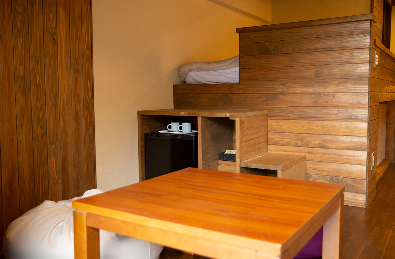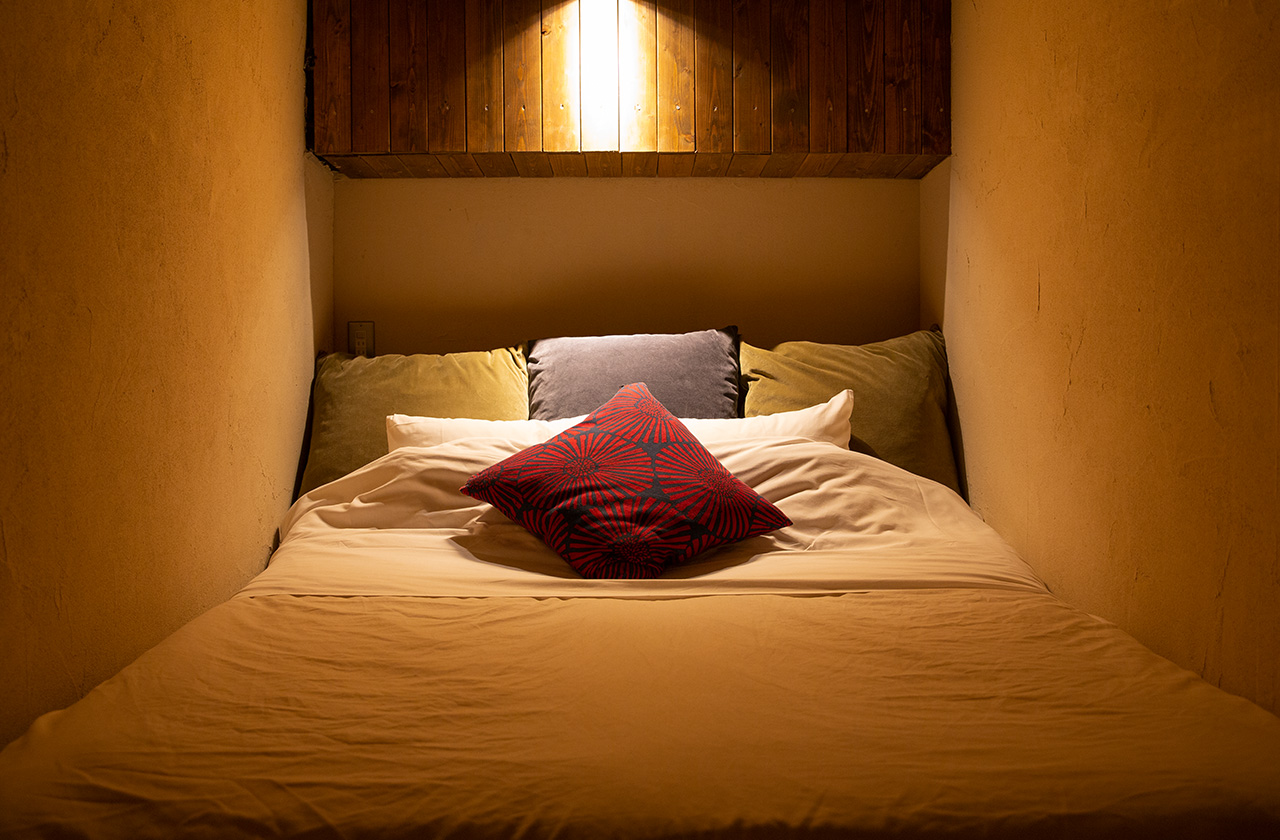 設備:ダブルベッド(140×200cm)1台、共有エアコン