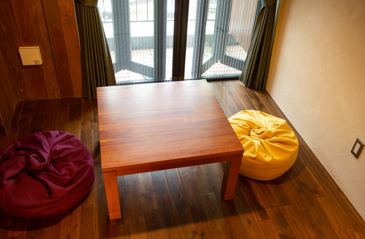 1階には暖炉を囲んで団欒を楽しめる共有ラウンジがあります。
