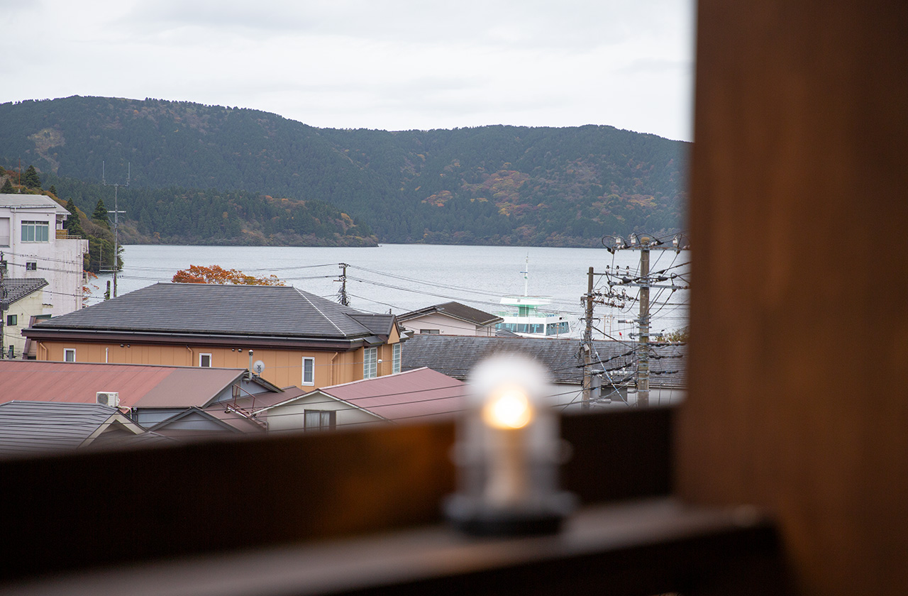 くつろげるスペースや、芦ノ湖を望むバルコニー、