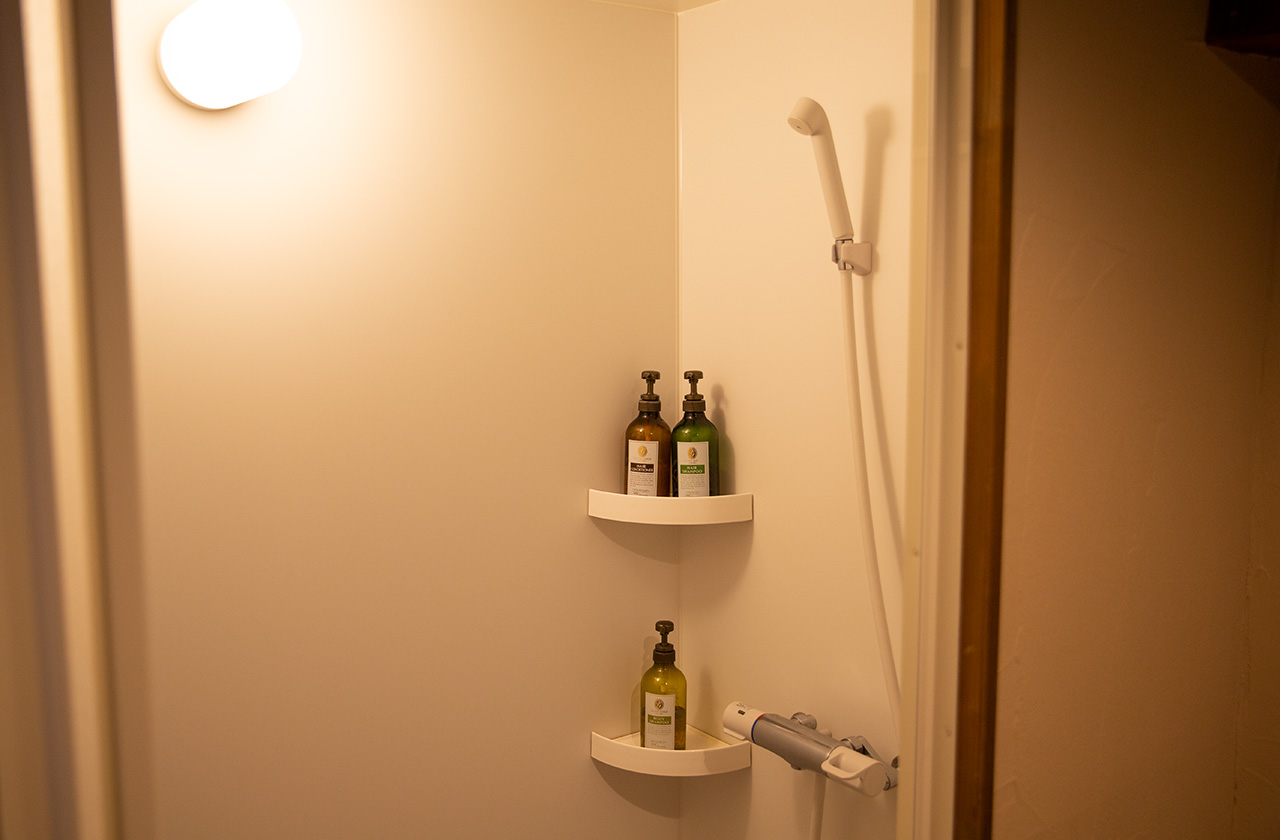 シャワー、専用エアコン、冷蔵庫、ケトル