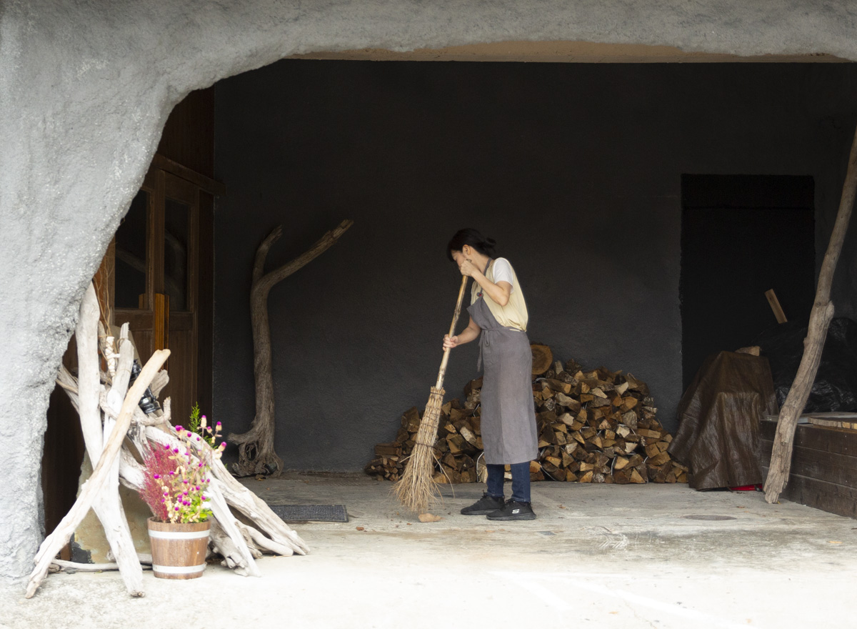 丁寧に薪をくべながら、夜まで暖炉の火も守り続けています。